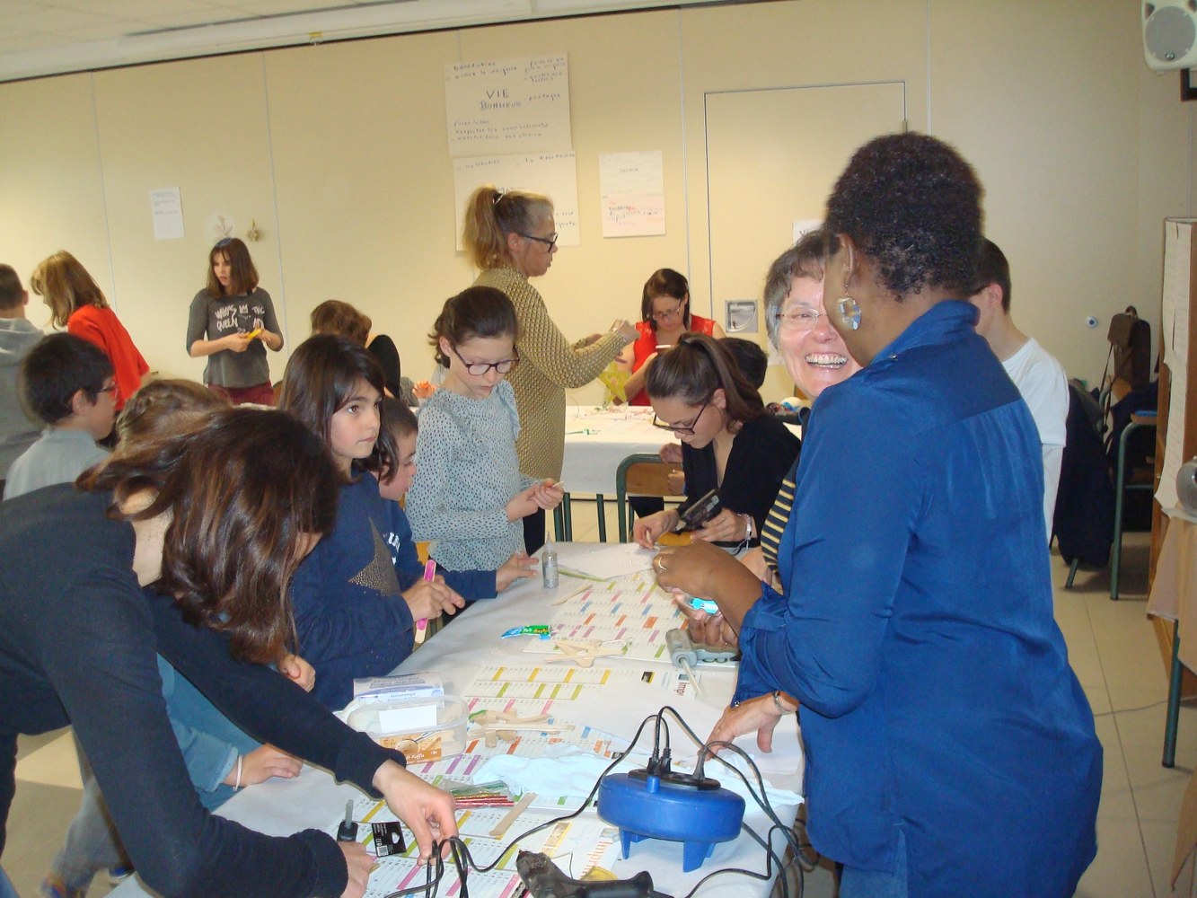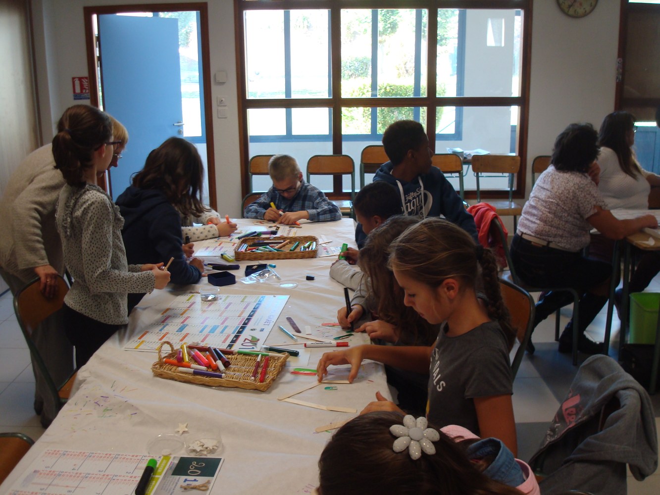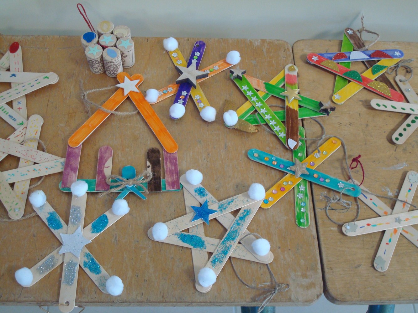 Création par les enfants de petites crèches ou d'étoiles en bois .
