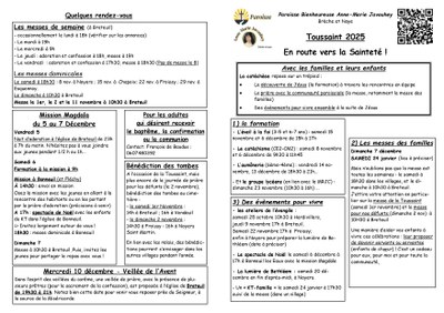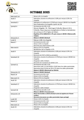 DATES ET HEURES DE CELEBRATIONS DES MESSES